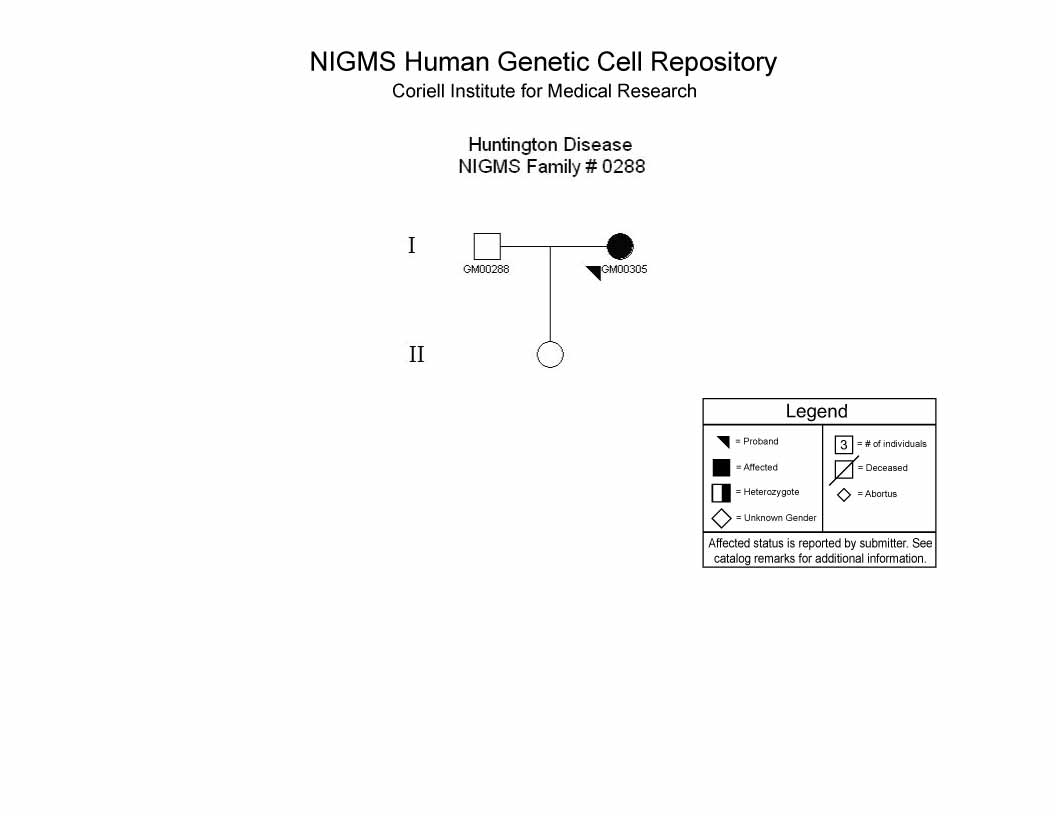 Age at onset:46; uncertain family history; normal spouse is GM00288 Fibroblast; formerly GM00094 |